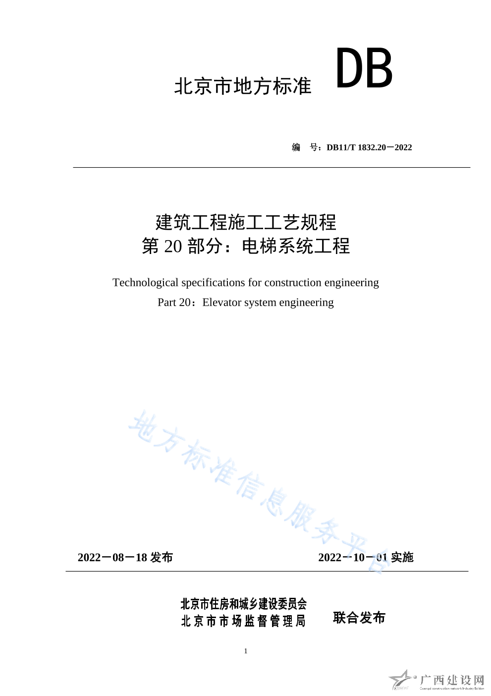 DB11 T+1832.20-2022建筑工程施工工藝規(guī)程 第20部分電梯系統(tǒng)工程