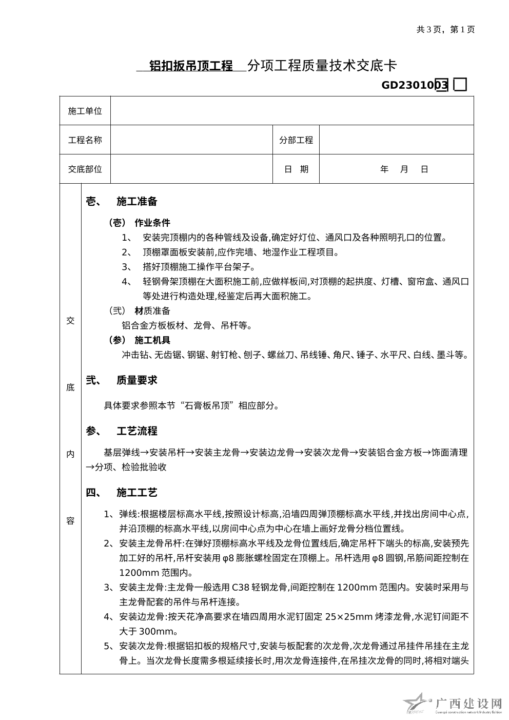 石膏板吊頂工程