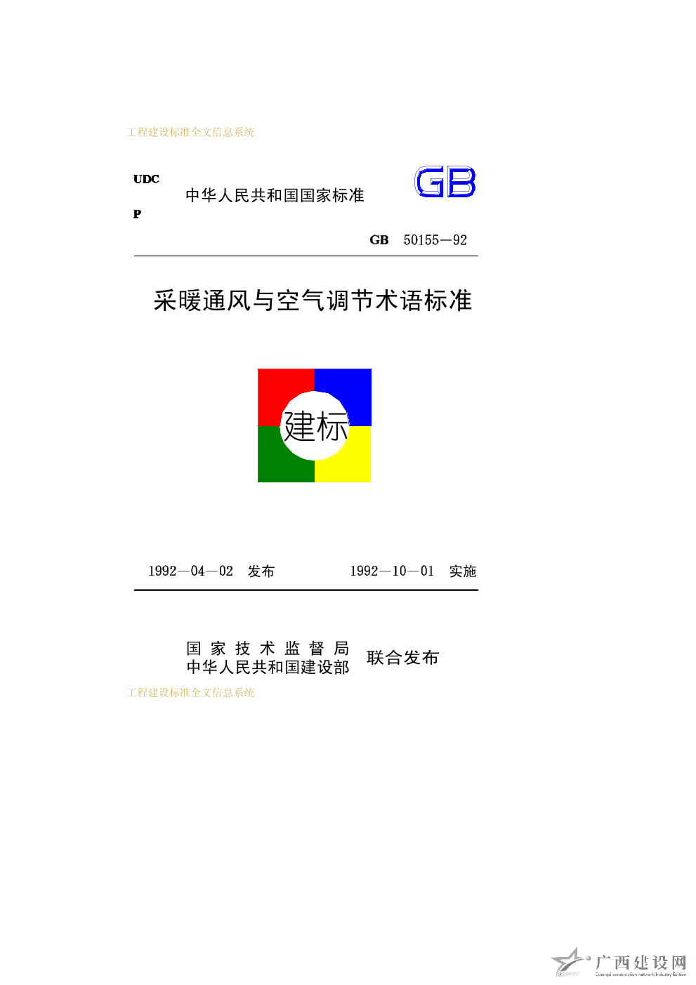 采暖通風與空氣調節術語標準 GB50155-92