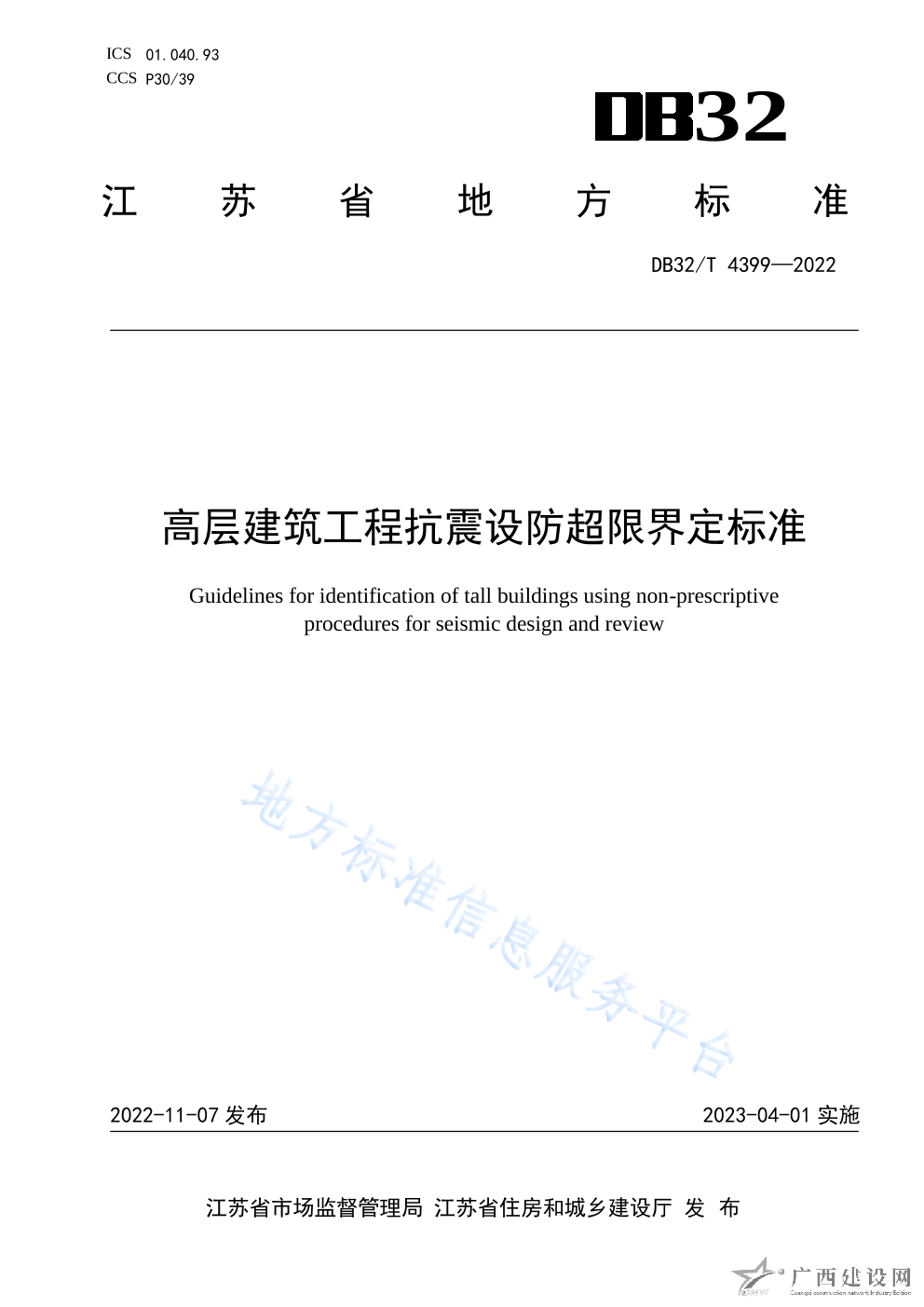 DB32 T4399-2022高層建筑工程抗震設防超限界定界定標準