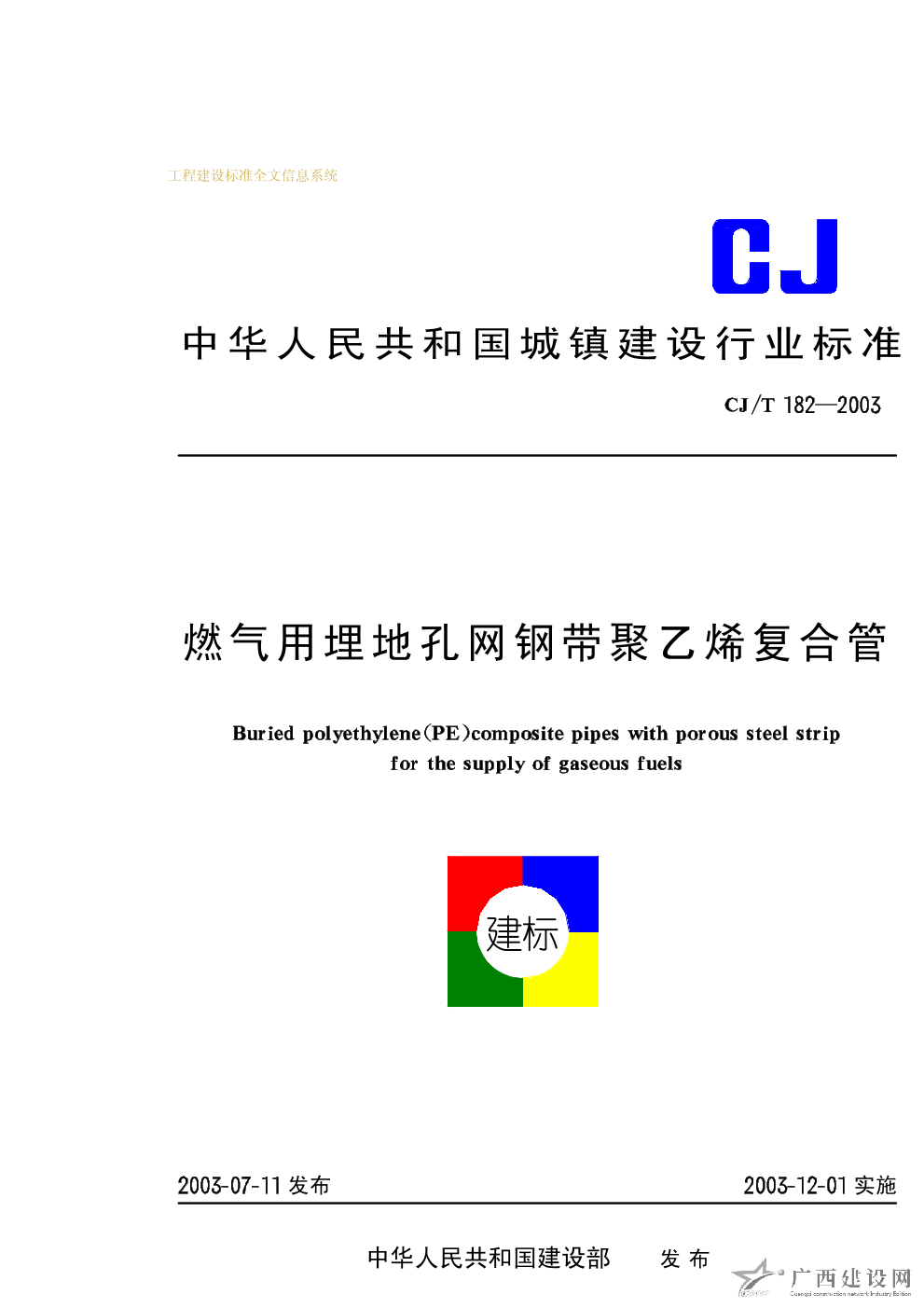 燃?xì)庥寐竦乜拙W(wǎng)鋼帶聚乙烯復(fù)合管 CJ/T182-2003
