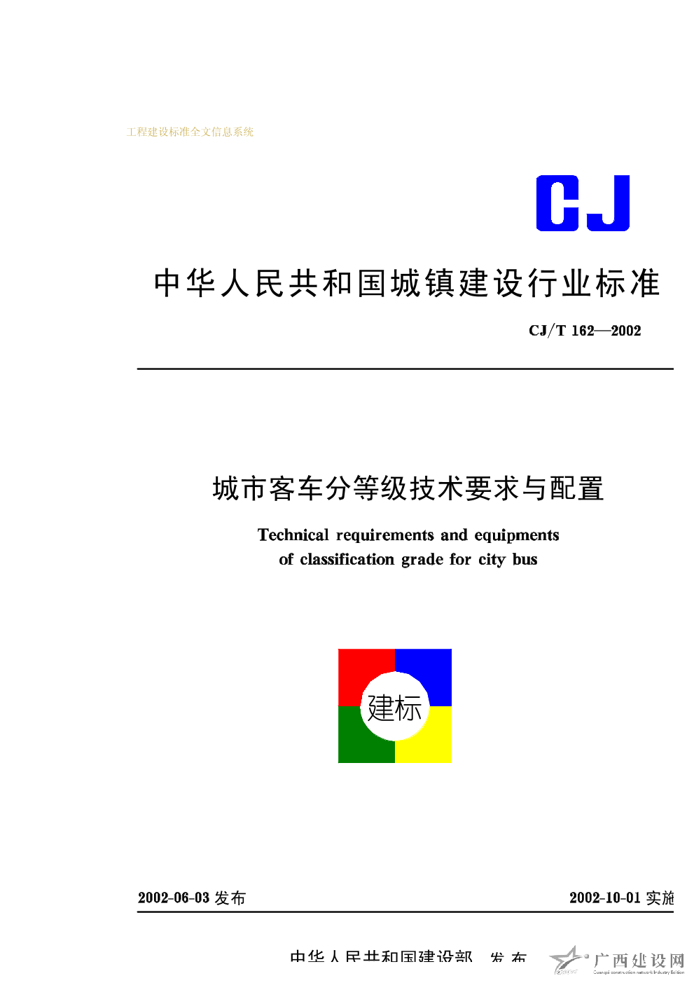 城市客車分等級技術(shù)要求與配置 CJ/T162—2002