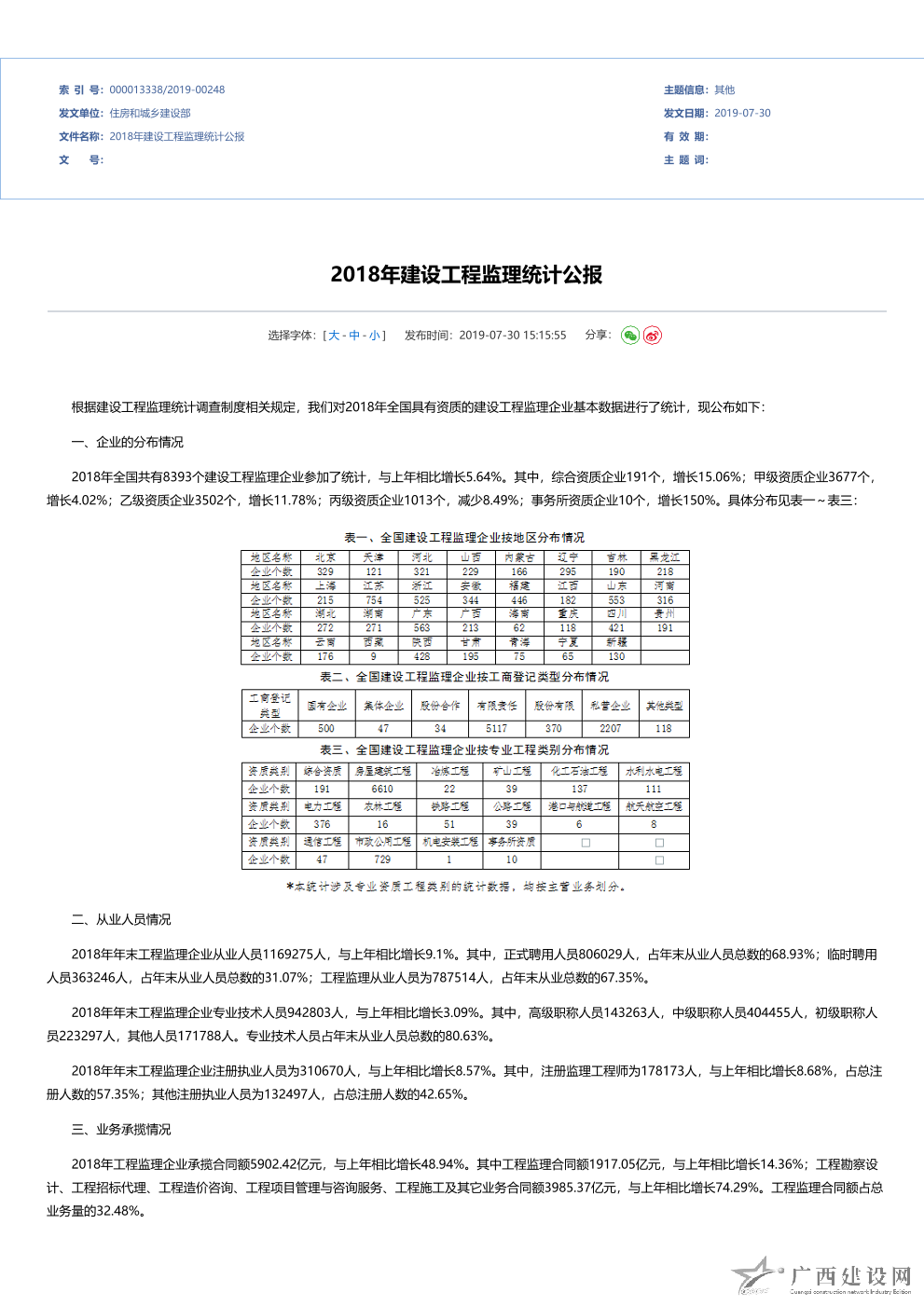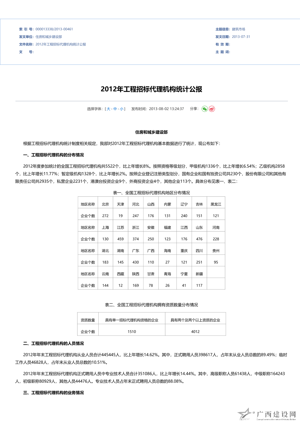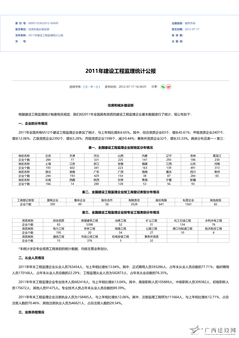 2012年全國建設工程監理統計公報