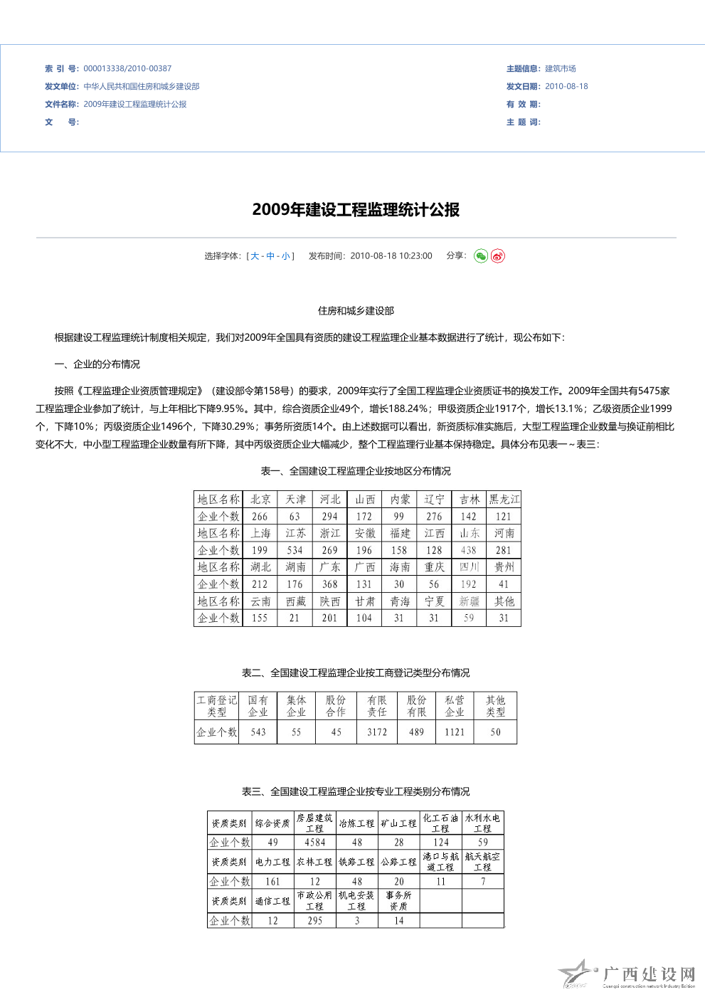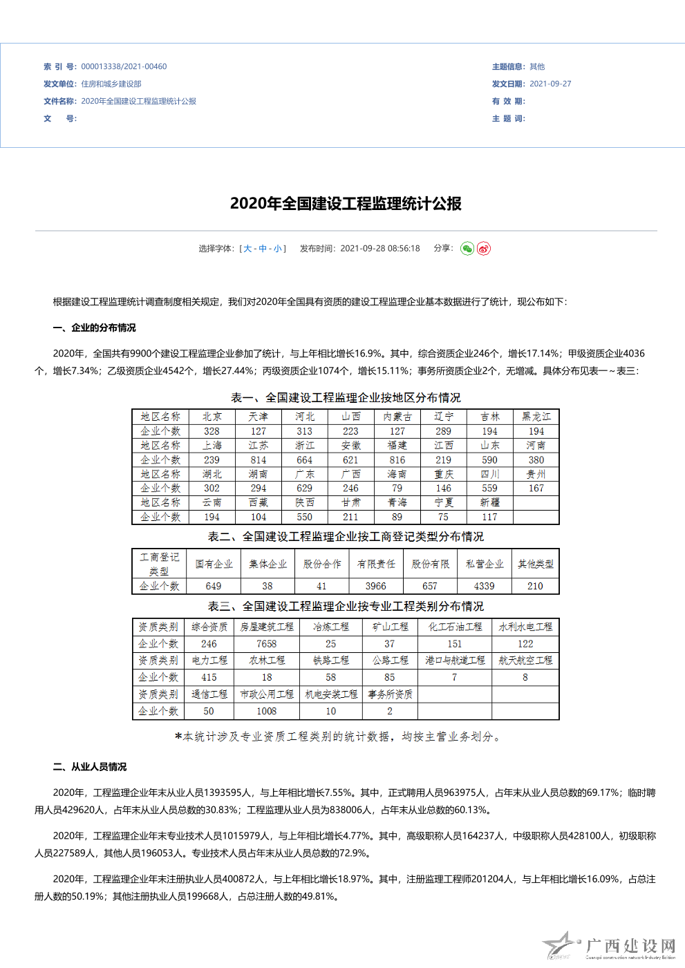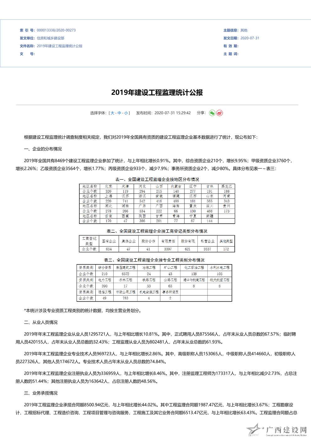 2012年全國建設工程監理統計公報