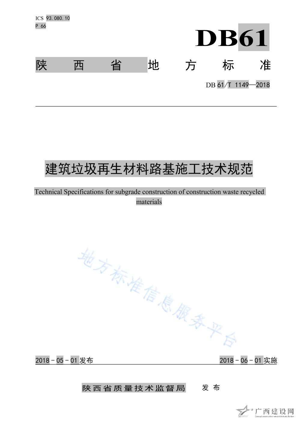 DB61 T1150-2018水泥穩(wěn)定建筑垃圾再生集料基層施工技術規(guī)范
