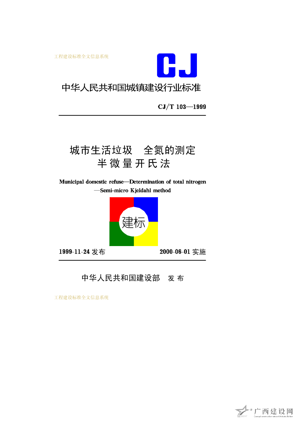 城市生活垃圾全氮的測定半微量開氏法 CJ/T103—1999