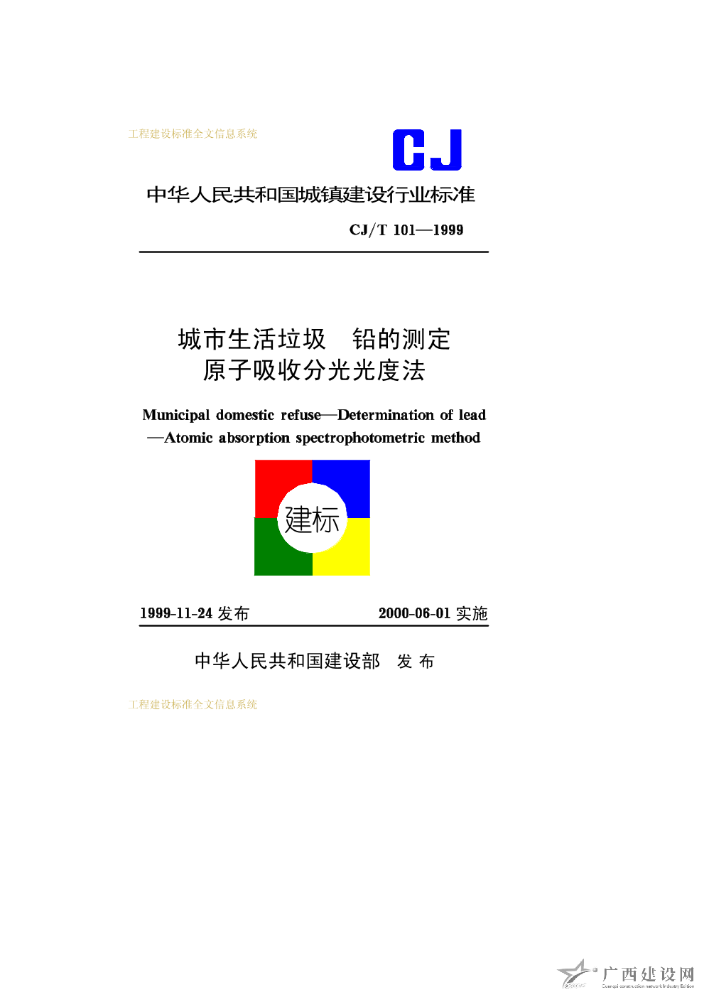 城市生活垃圾鉛的測定原子吸收分光光度法 CJ/T101—1999