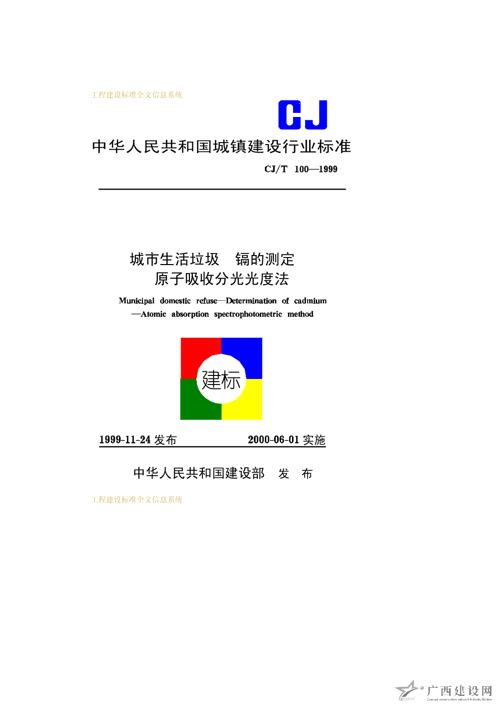 城市生活垃圾鎘的測定原子吸收分光光度法 CJ/T100—1999