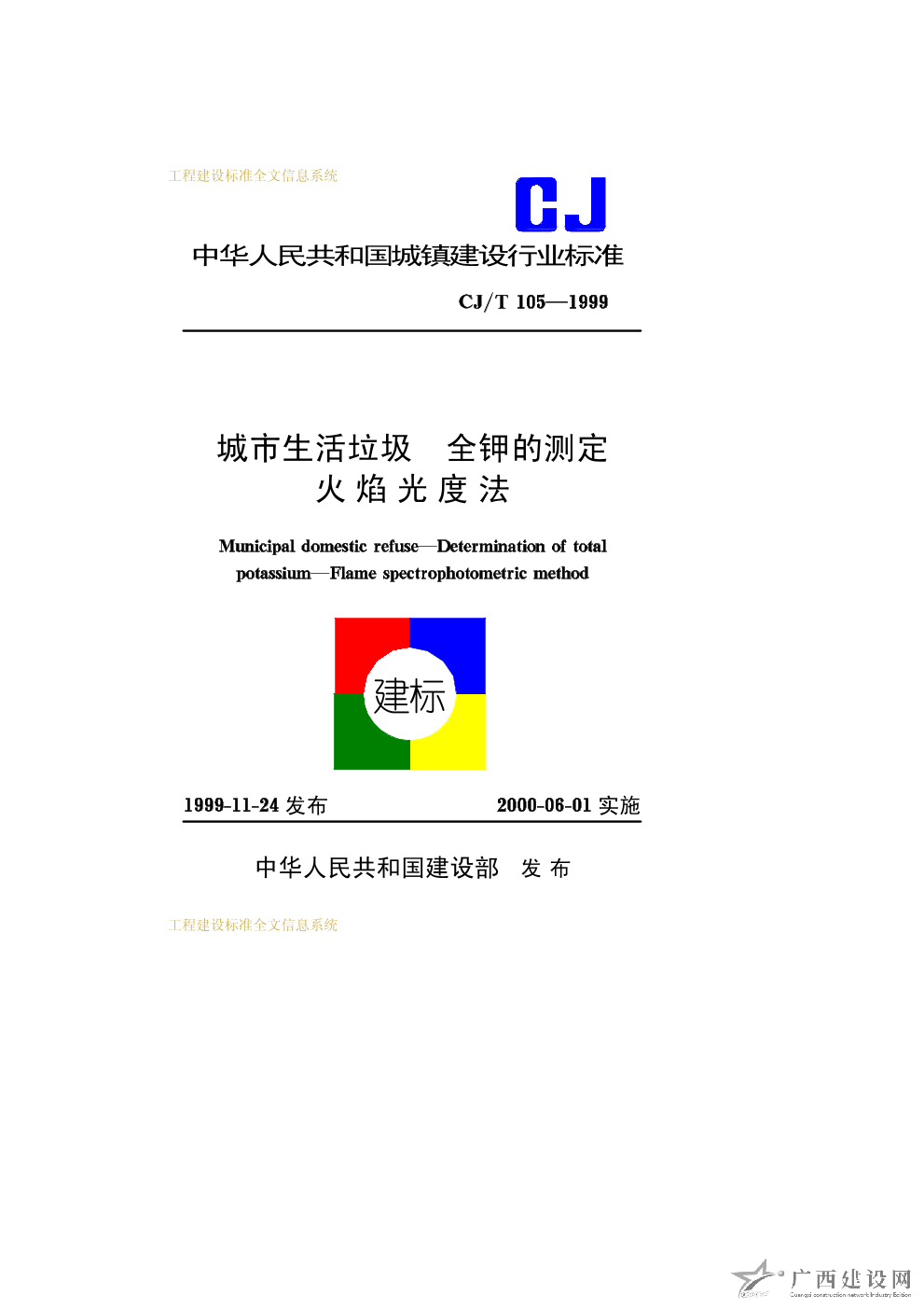 城市生活垃圾全鉀的測定火焰光度法 CJ/T105—1999