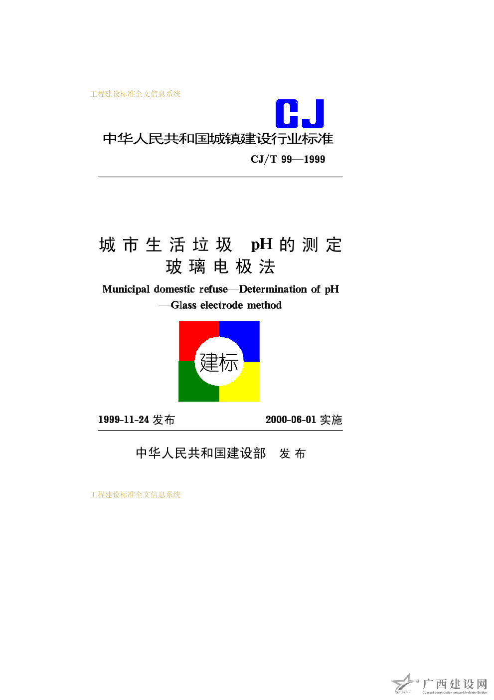 城市生活垃圾pH的測定玻璃電極法 CJ/T99—1999