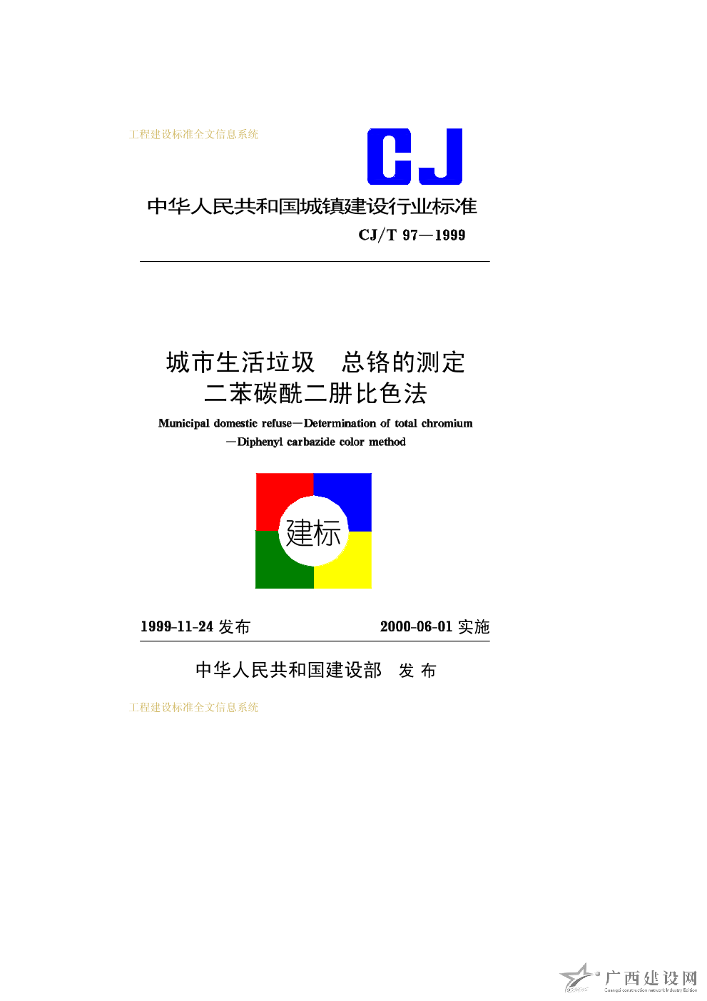 城市生活垃圾總鉻的測定二苯碳酰二肼比色法 CJ/T97-1999