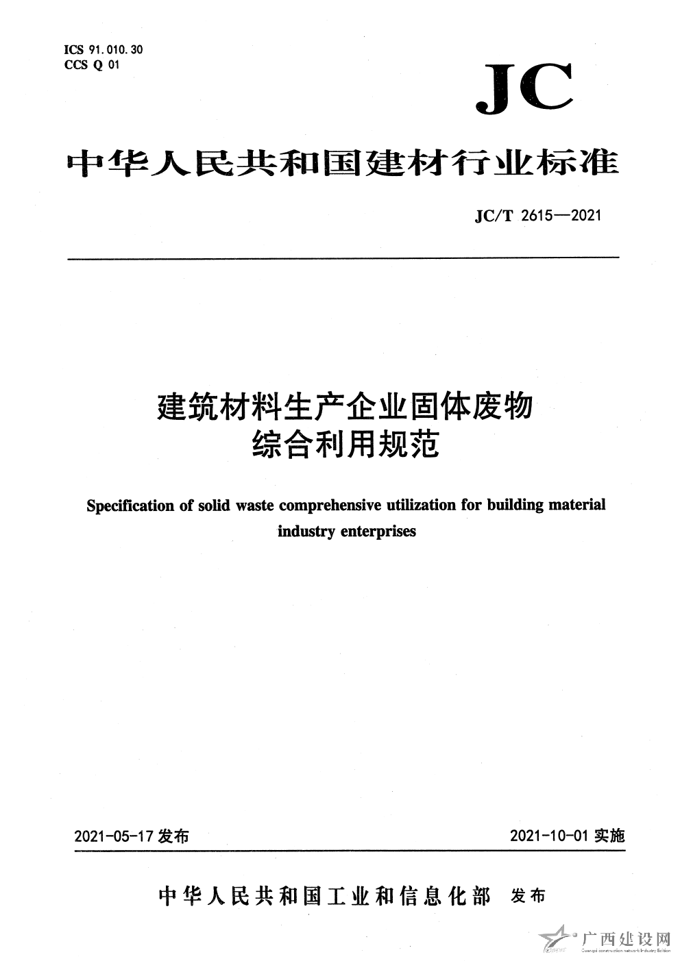 JC T2615-2021 建筑材料生產企業固體廢物綜合利用規范