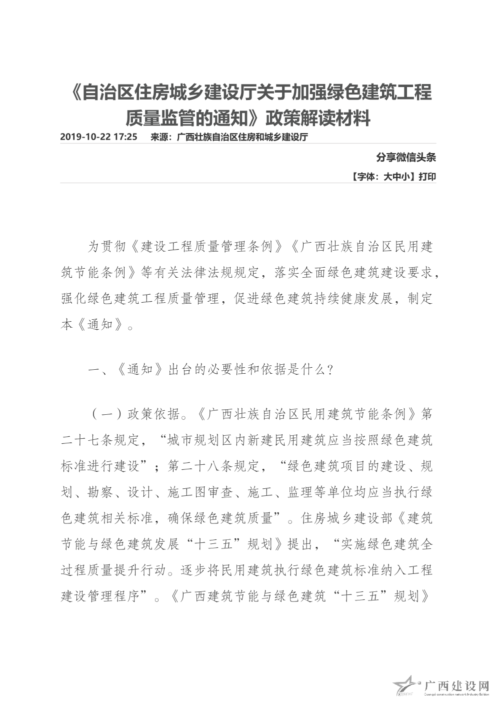 《自治區(qū)住房城鄉(xiāng)建設(shè)廳關(guān)于加強(qiáng)綠色建筑工程質(zhì)量監(jiān)管的通知》政策解讀材料