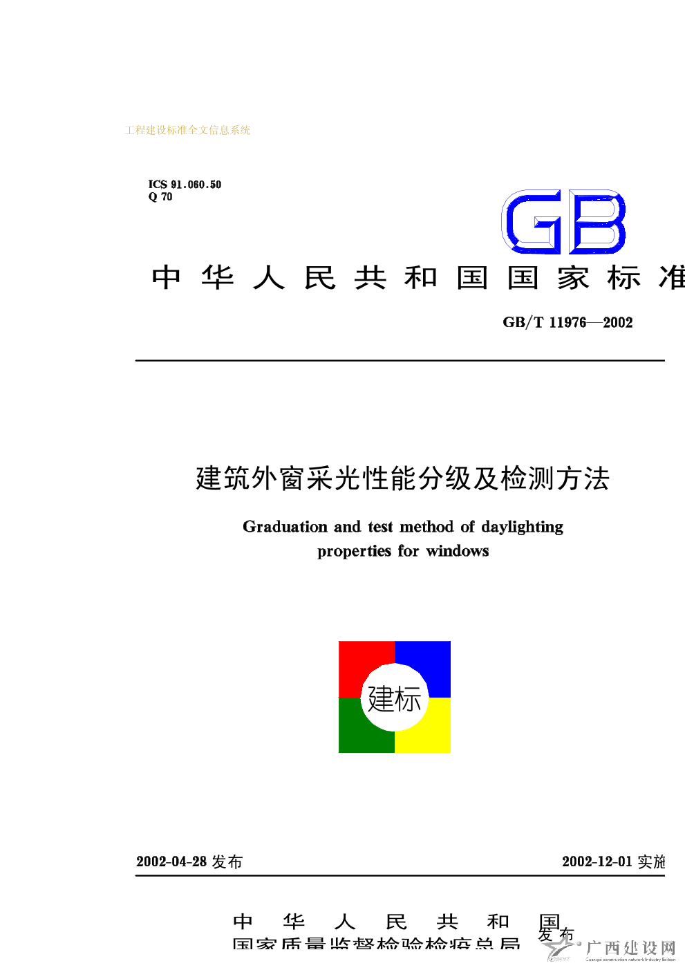 建筑外窗采光性能分級及檢測方法 GB/T11976—2002