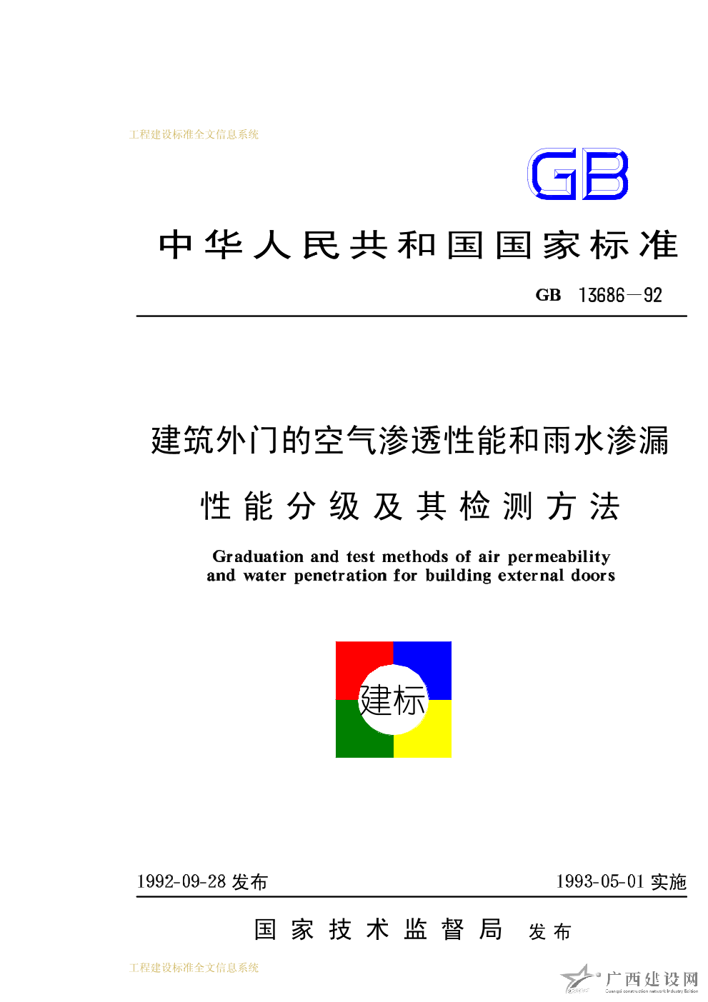 建筑外門的空氣滲透性能和雨水滲漏性能分級及其檢測方法 GB13686-92