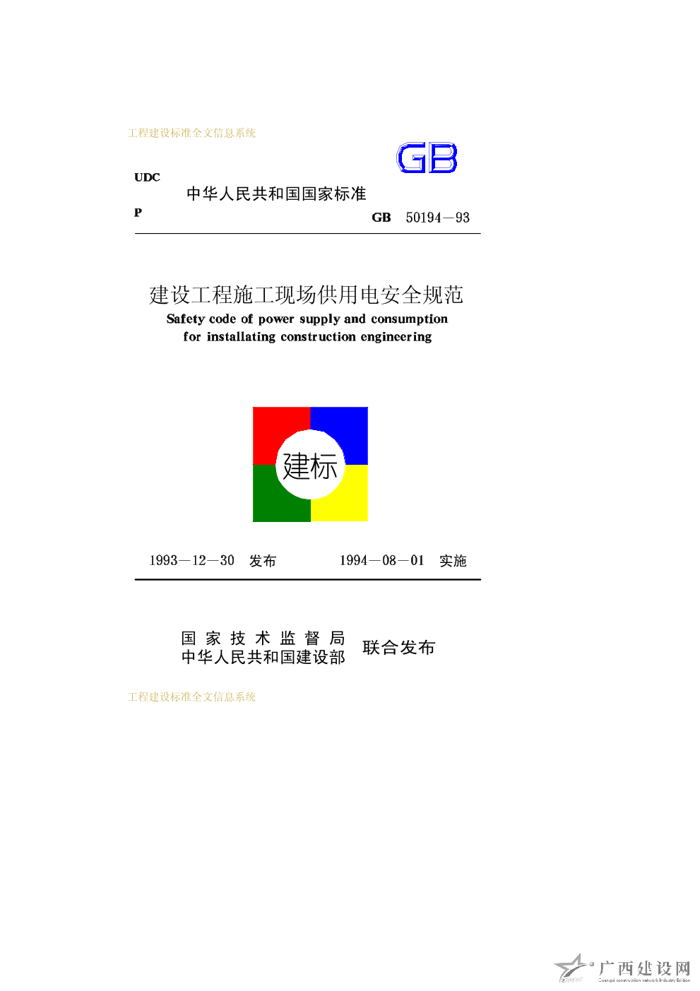 建設(shè)工程施工現(xiàn)場(chǎng)供用電安全規(guī)范 GB50194-93