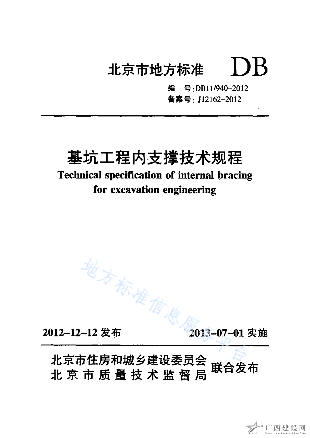 DB11 940-2012_基坑工程內(nèi)支撐技術(shù)規(guī)程