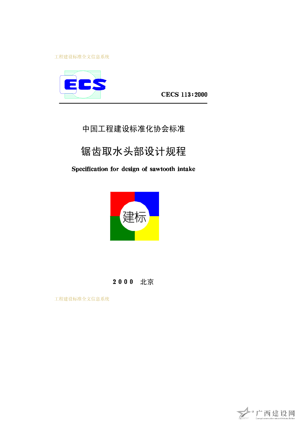 鋸齒取水頭部設計規(guī)程 CECS113∶2000