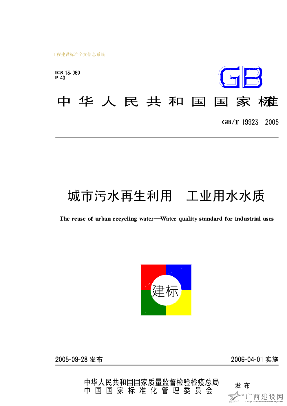 城市污水再生利用 工業(yè)用水水質(zhì) GB/T19923-2005