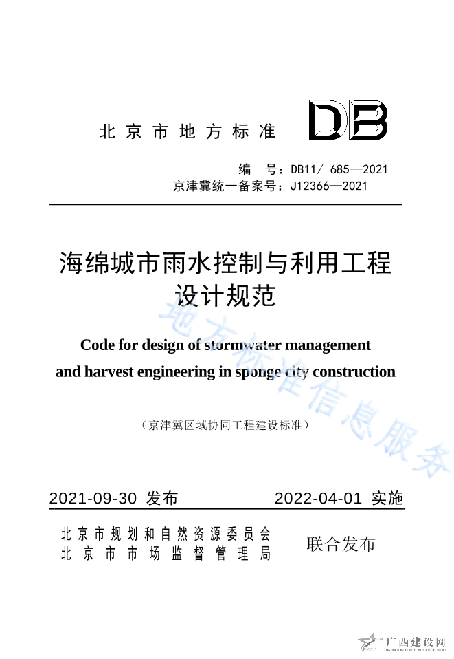 DB11 685-2021海綿城市雨水控制與利用工程設(shè)計(jì)規(guī)范