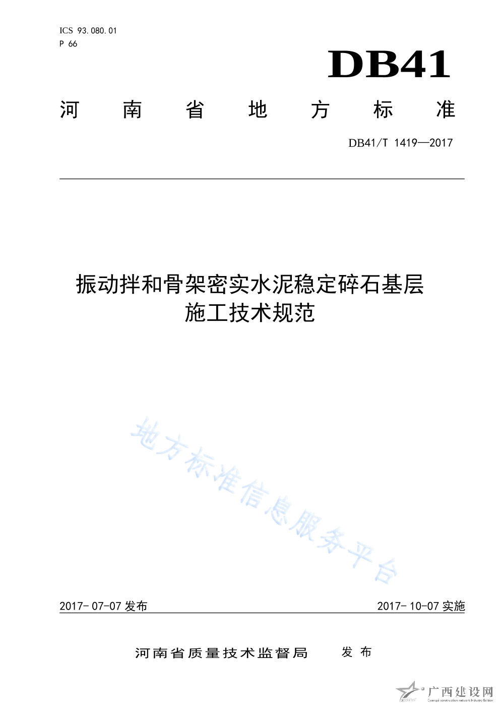 DB41 T1419-2017振動(dòng)拌和骨架密實(shí)水泥穩(wěn)定碎石基層施工技術(shù)規(guī)范