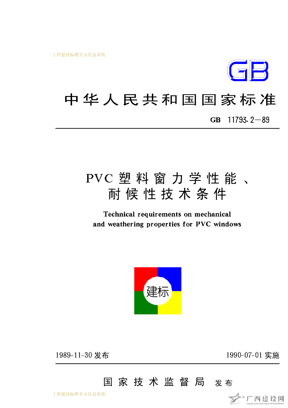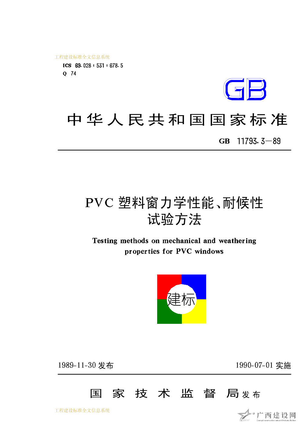 PVC塑料窗力學(xué)性能、耐候性技術(shù)條件 GB11793.2-89