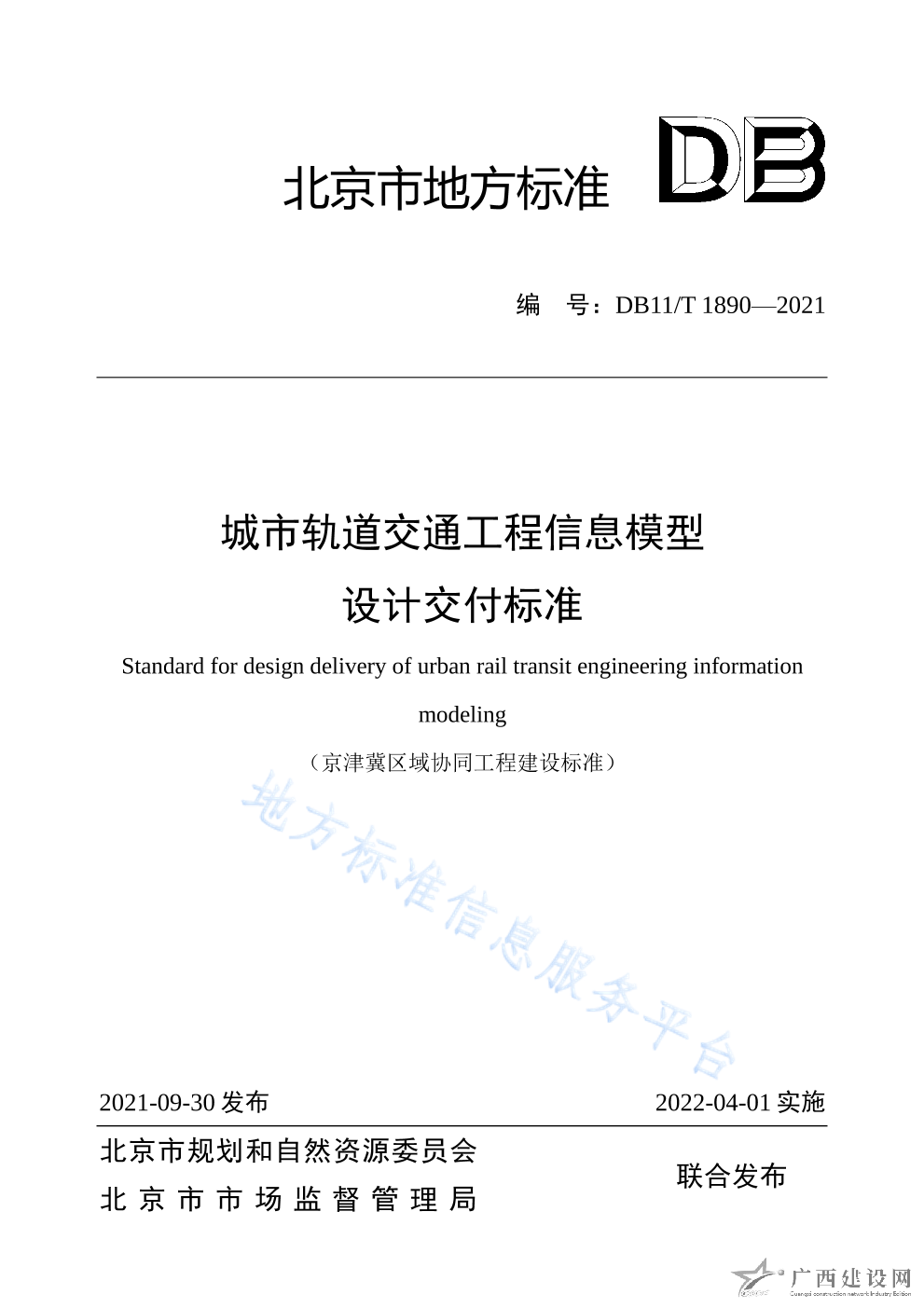 DB11 T+1890-2021城市軌道交通工程信息模型設計交付標準