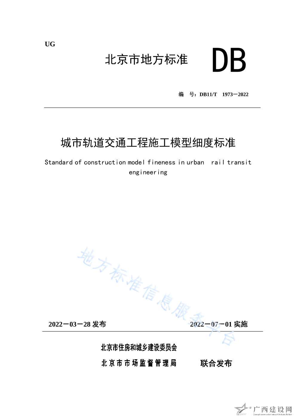 DB11 T+1973-2022城市軌道交通工程施工模型細度標準
