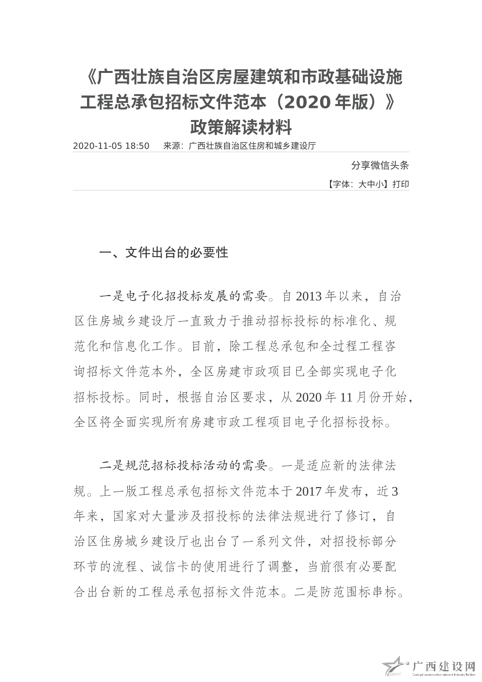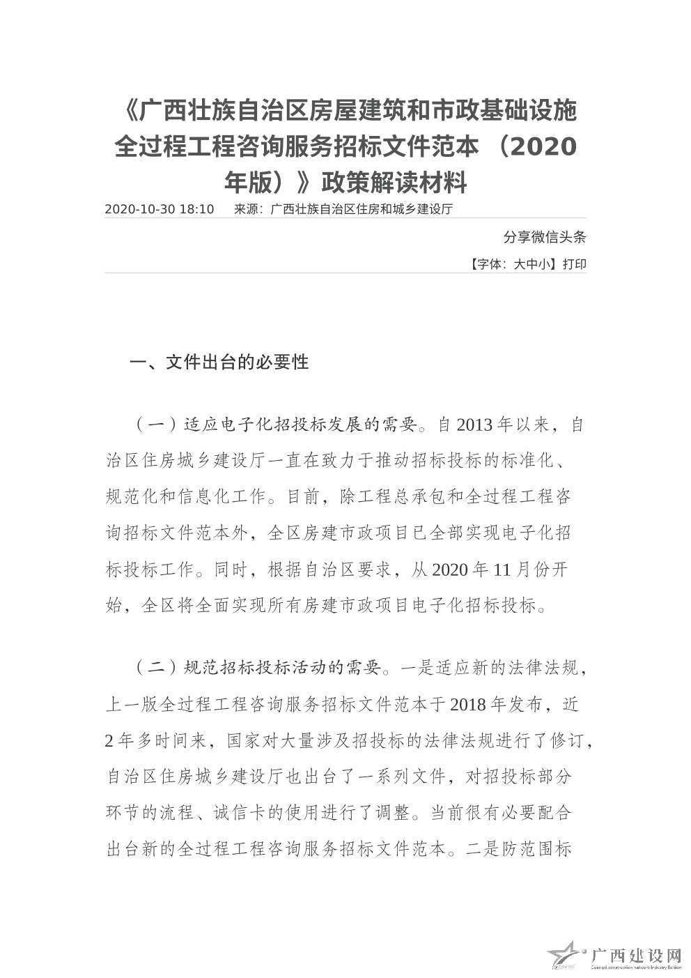 廣西壯族自治區房屋建筑和市政工程基礎設施全過程工程咨詢服務招標文件范本(2020年版)