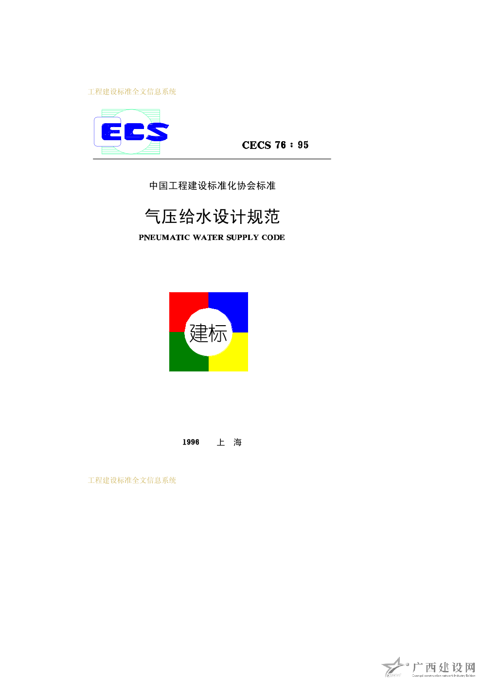 氣壓給水設(shè)計(jì)規(guī)范 CECS76∶95