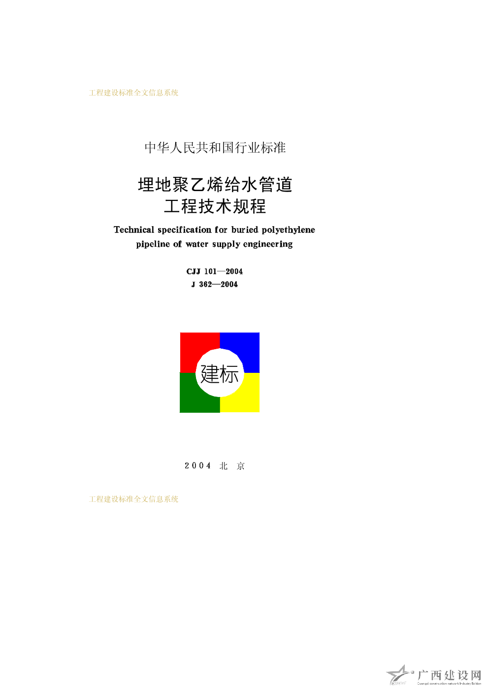 埋地聚乙烯給水管道工程技術規程 CJJ101-2004