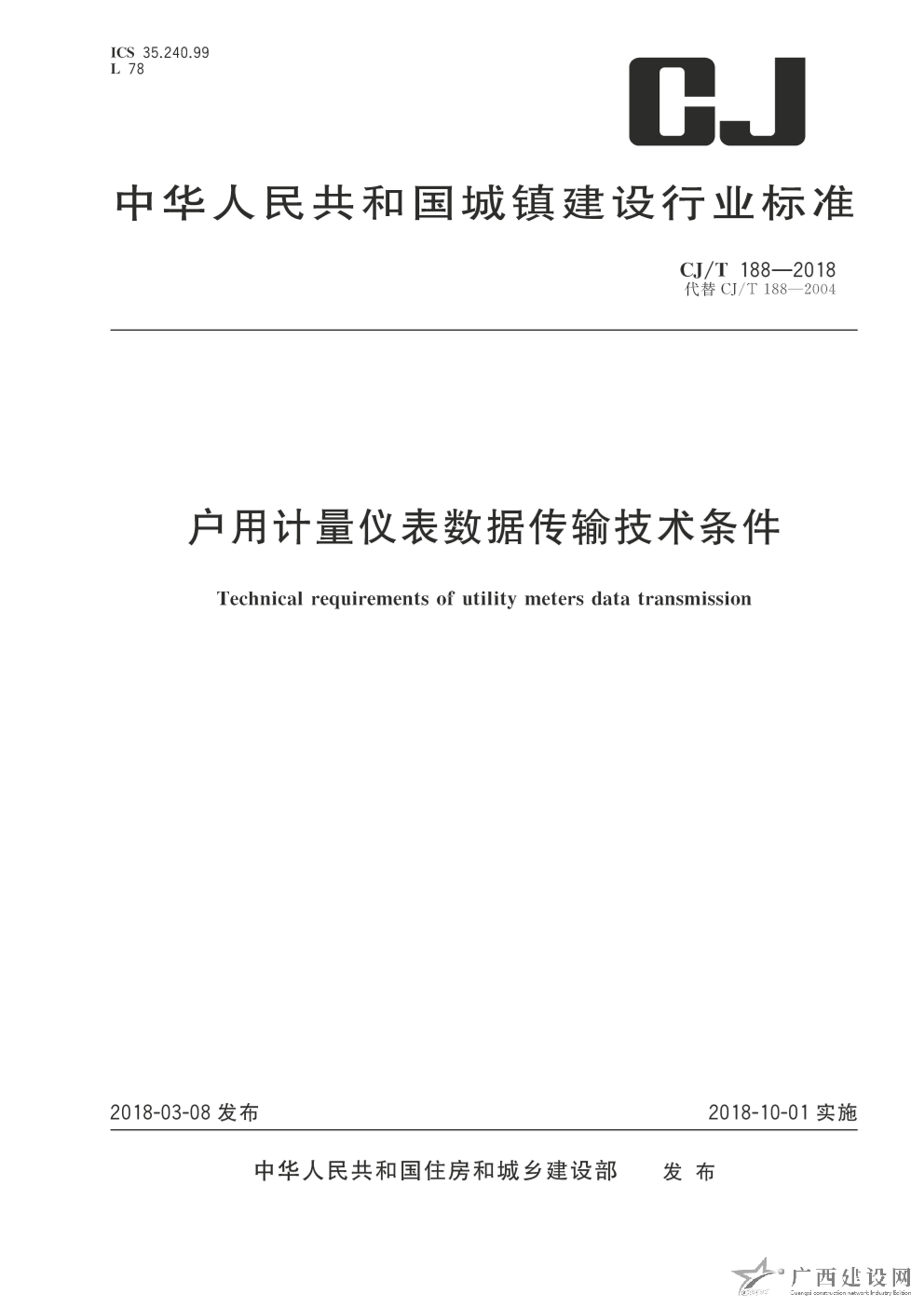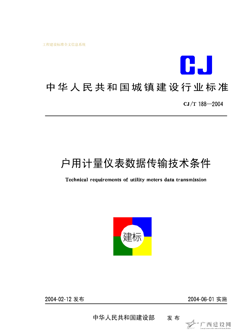 戶用計(jì)量儀表數(shù)據(jù)傳輸技術(shù)條件 CJ/T188-2004