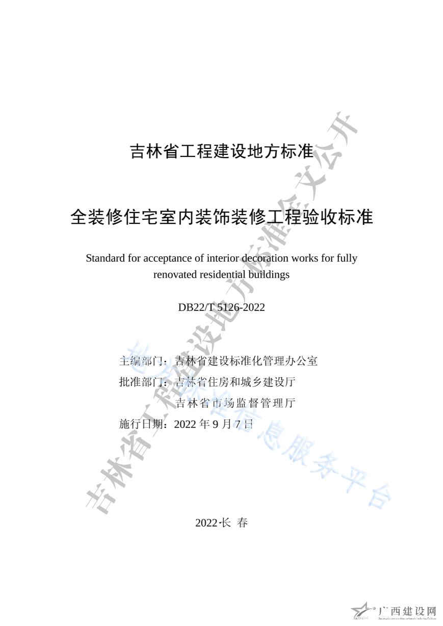 DB22T 5126-2022全裝修住宅室內裝飾裝修工程驗收標準