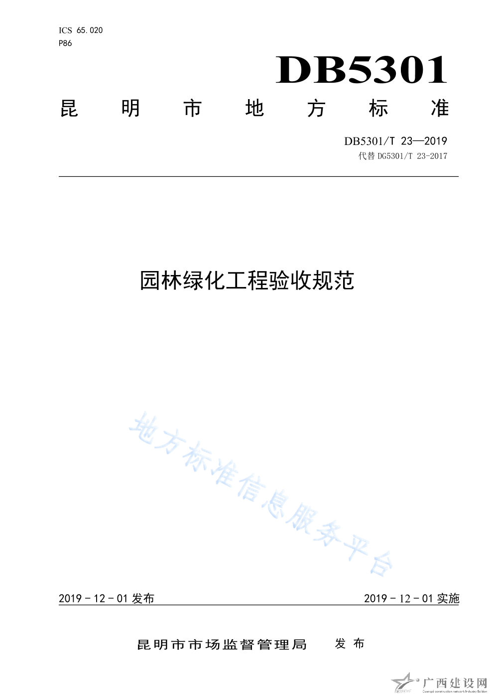 DB+5301T+23—2019《園林綠化工程驗收規范》(昆明市市場監督管理局)