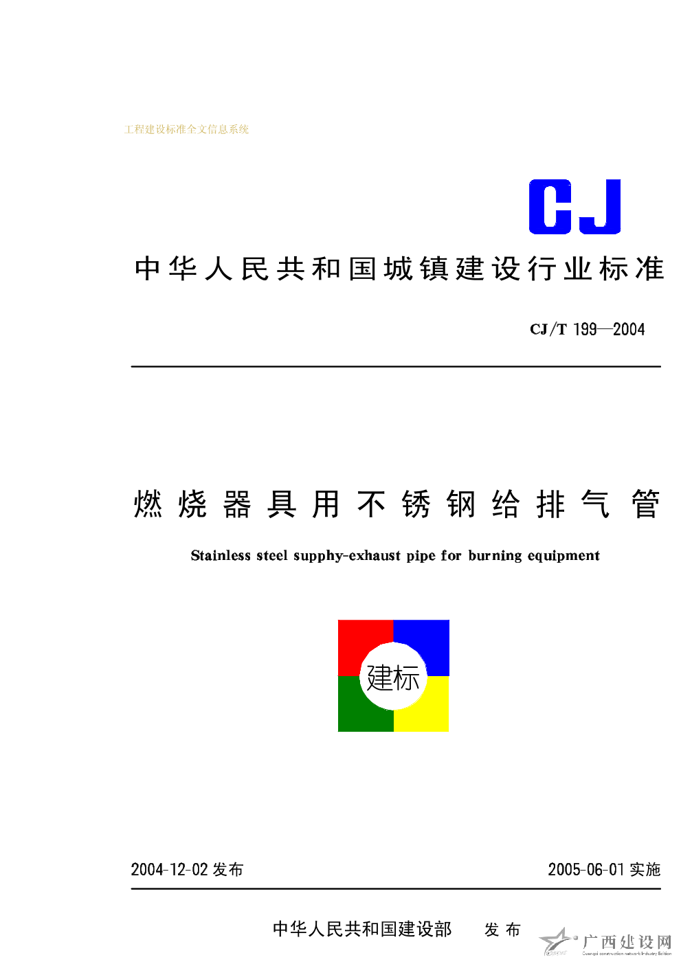燃燒器具用不銹鋼排氣管 CJ/T198-2004