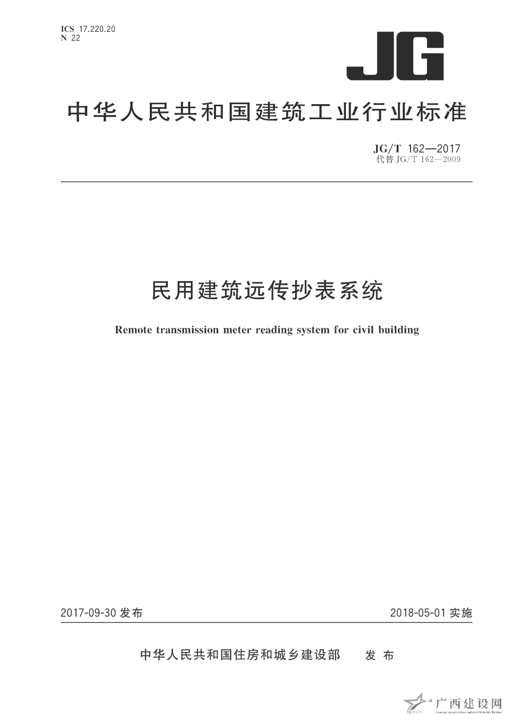 JG T162-2017民用建筑遠(yuǎn)傳抄表系統(tǒng)