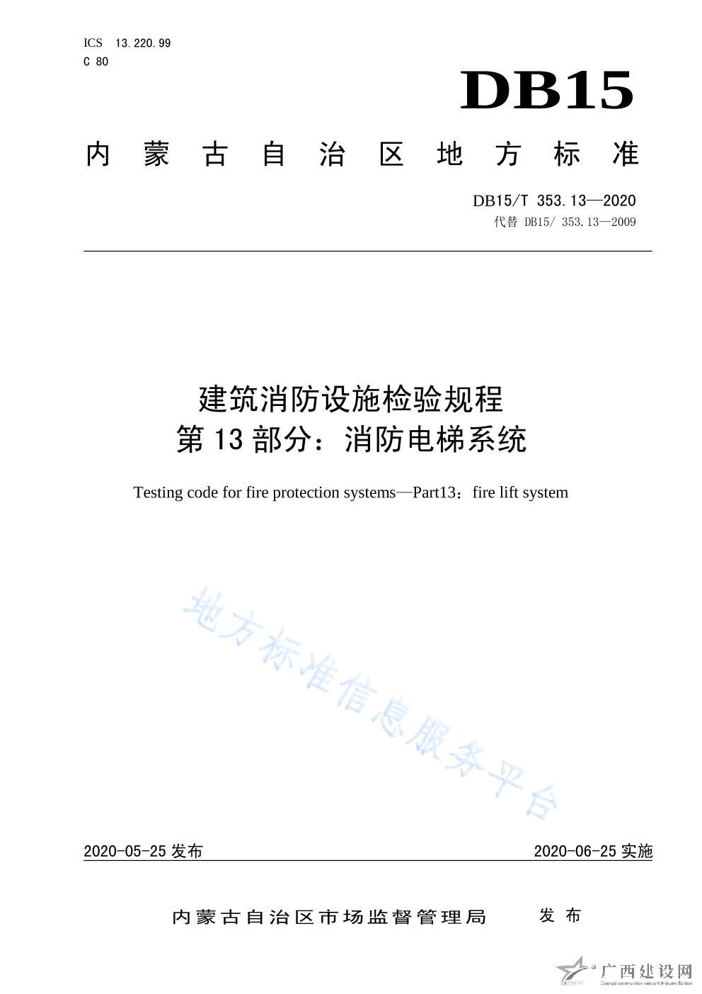 DB15 T353 13-2020建筑消防設(shè)施檢驗(yàn)規(guī)程 第13部分消防電梯系統(tǒng)