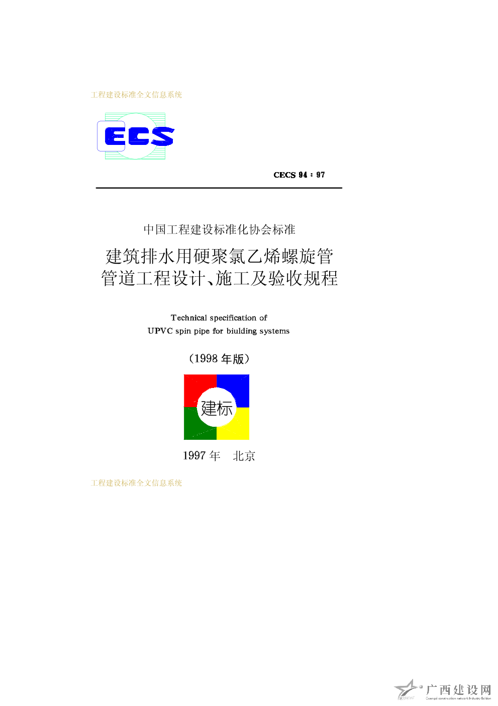 建筑排水用硬聚氯乙烯螺旋管管道工程設計、施工及驗收規程 CECS94∶97