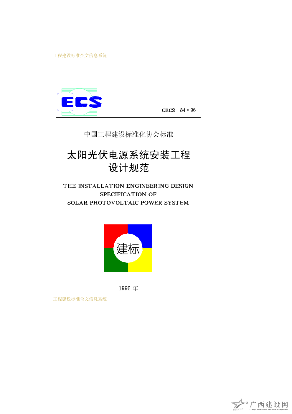 太陽(yáng)光伏電源系統(tǒng)安裝工程設(shè)計(jì)規(guī)范 CECS84∶96