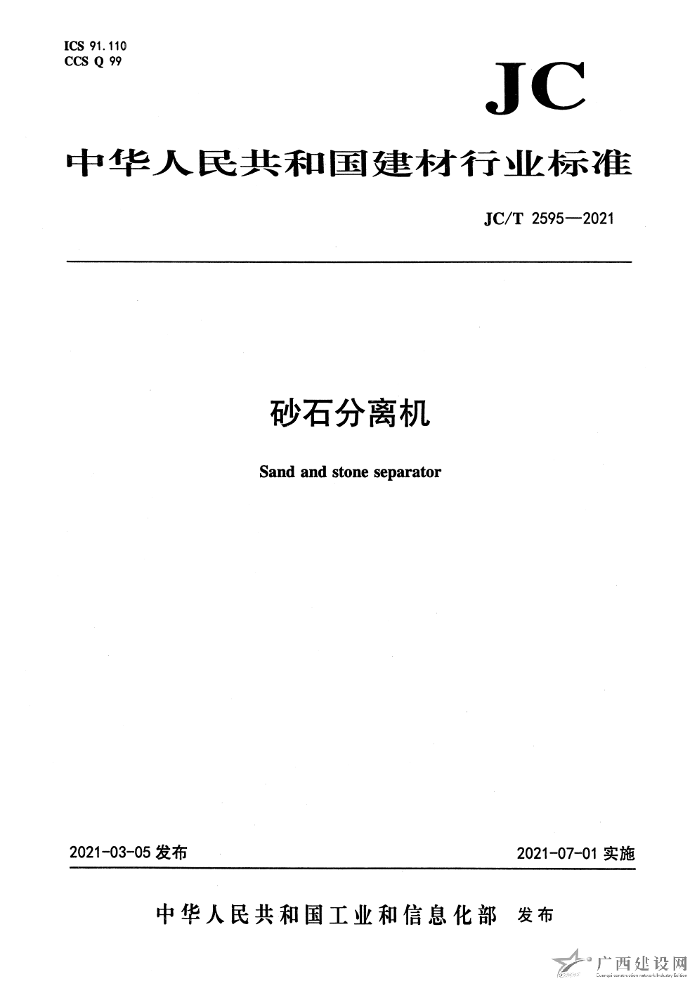 JC T 2595-2021 砂石分離機(jī)