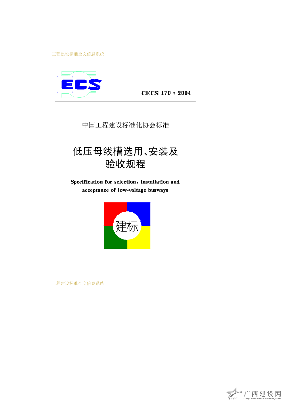 低壓母線槽選用、安裝及驗收規(guī)程 CECS170∶2004