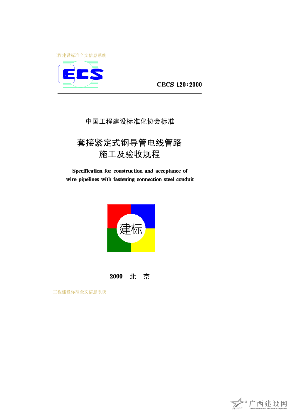 套接緊定式鋼導管電線管路施工及驗收規(guī)程 CECS120∶2000