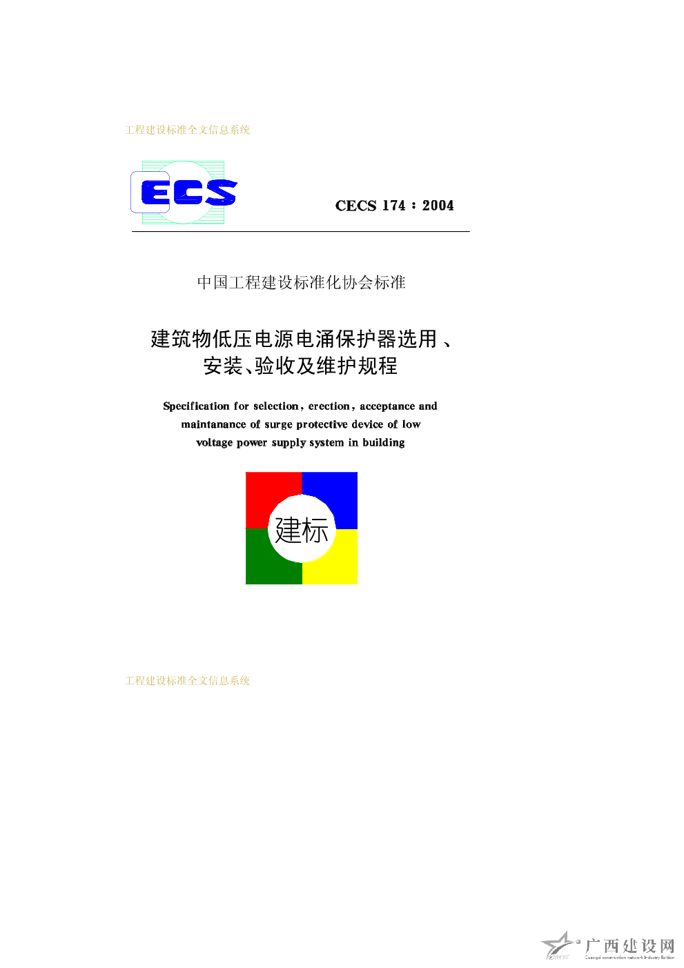 建筑物低壓電源電涌保護器選用、安裝、驗收及維護規(guī)程 CECS174-2004