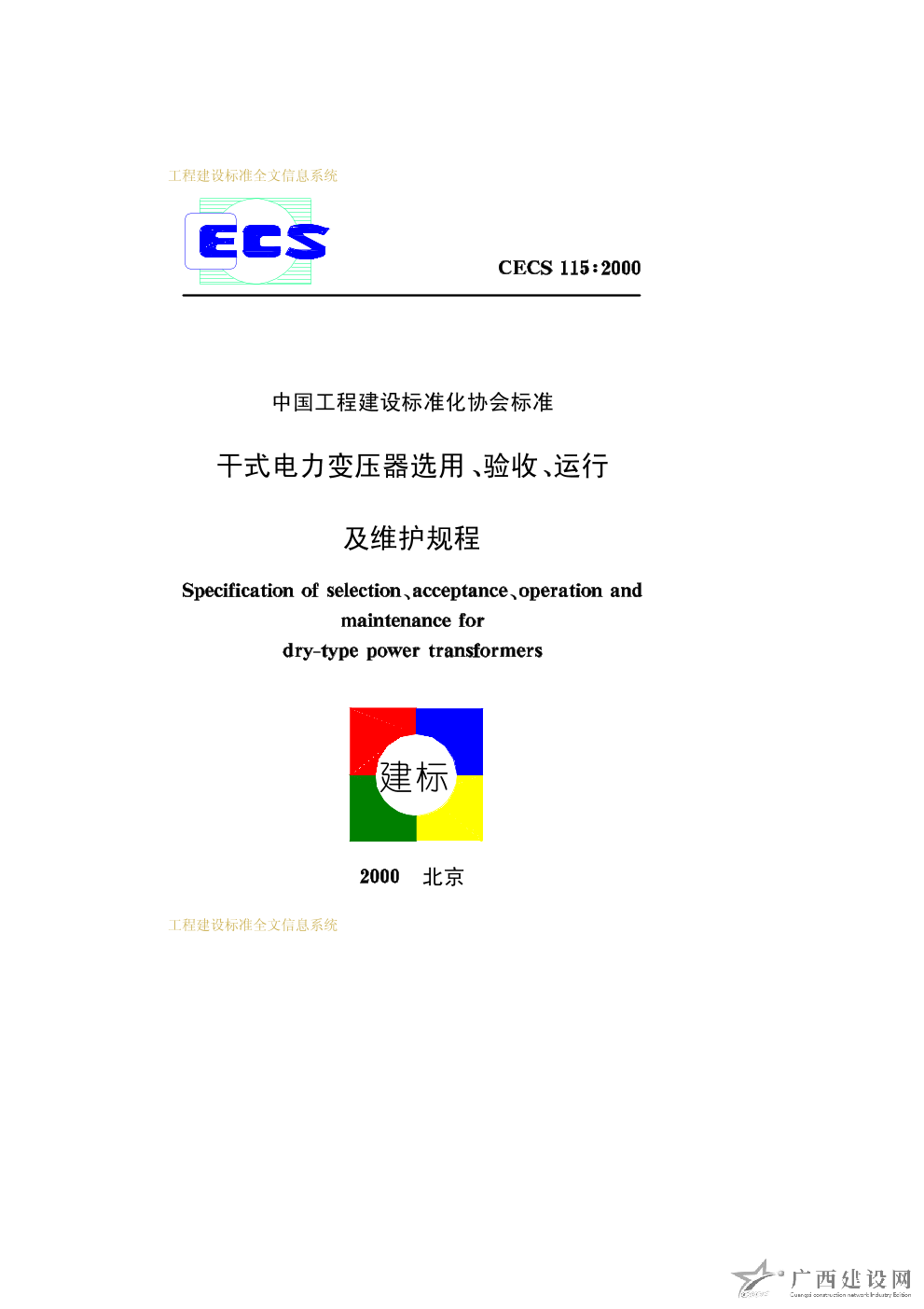 干式電力變壓器選用、驗收、運行及維護規(guī)程 CECS115∶2000