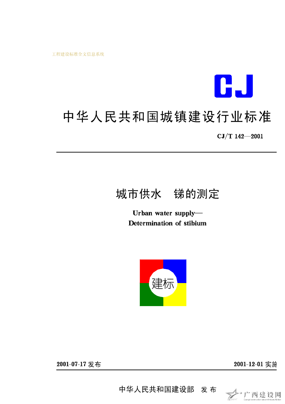 城市供水 銻的測定 CJ/T142—2001