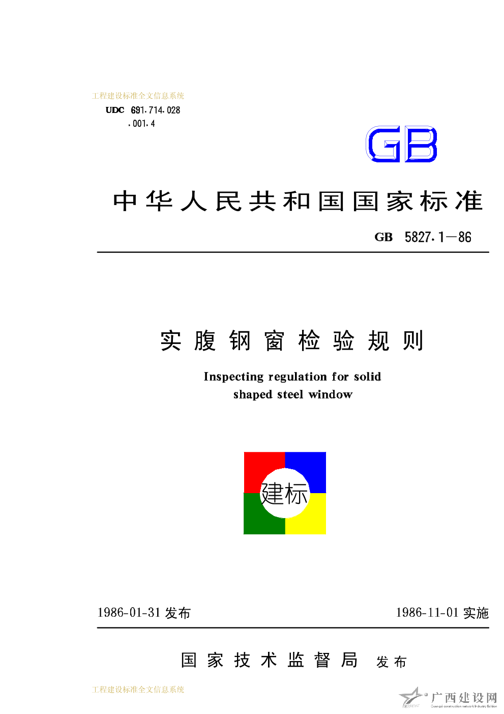 實腹鋼窗檢驗規則 GB5827.1-86