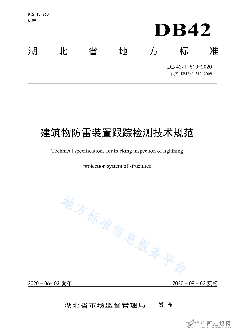 DB42 T510-2020建筑物防雷裝置跟蹤檢測技術規范