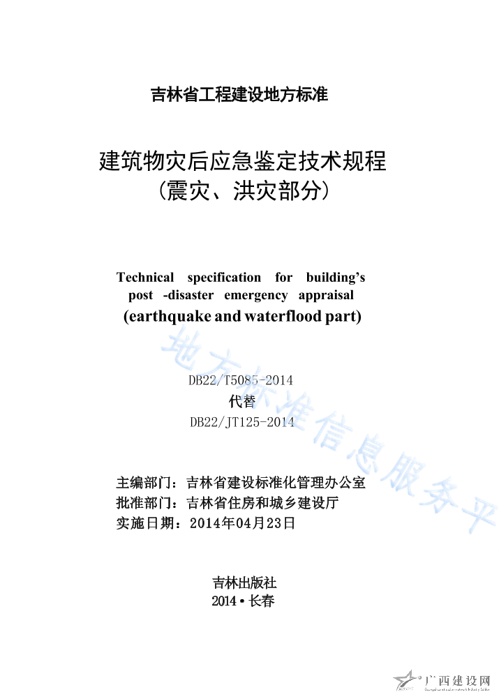 DB22T5085-2014建筑物災后應急鑒定技術規程(震災、洪災部分)