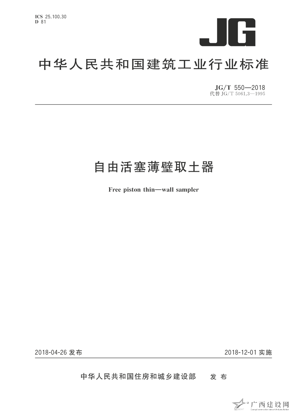 JG-T550-2018:自由活塞薄壁取土器