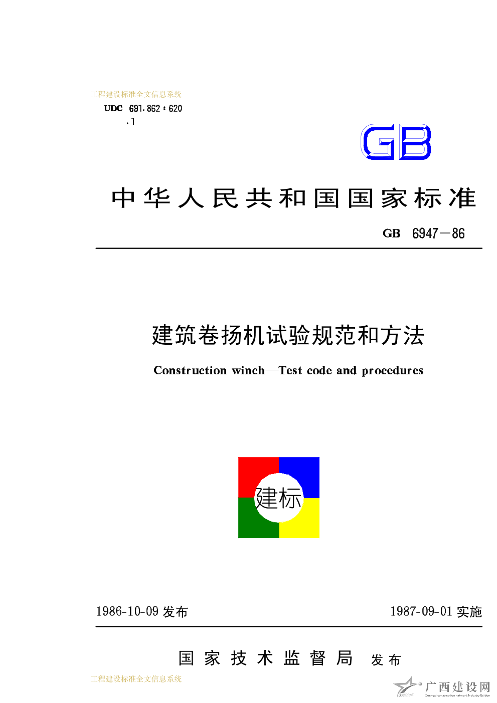 建筑卷?yè)P(yáng)機(jī)試驗(yàn)規(guī)范和方法 GB6947-86